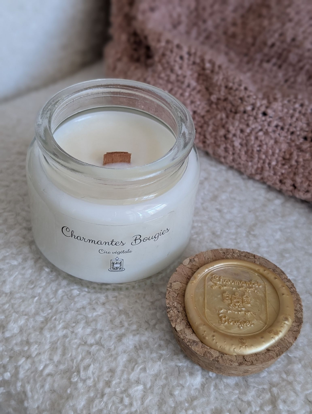 Type de mèche pour les petites : ce sont des mèches en coton (les mèches en bois sont disponibles avec les grandes bougies).