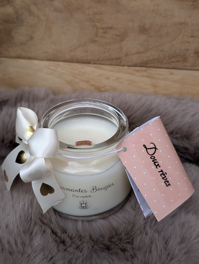 Type de mèche pour les petites : ce sont des mèches en coton (les mèches en bois sont disponibles avec les grandes bougies).