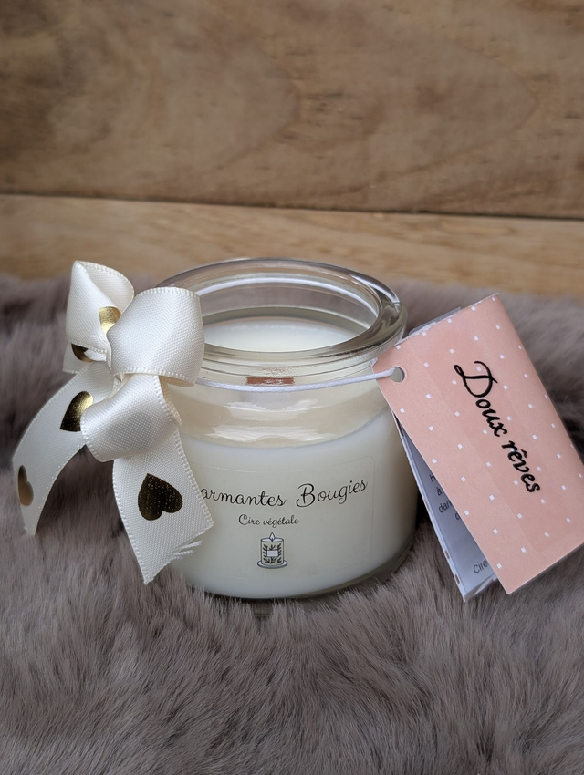 Laissez la douceur t’envelopper avec notre bougie « Doux Rêves », une parenthèse apaisante pour accompagner tes soirées. Ses notes de tête de freesia et solaires apportent une lumière délicate, suivies d’un cœur d’héliotrope et de santal, tendre et réconfortant. En fond, le musc et la vanille déposent une caresse chaude et veloutée, parfaite pour se détendre et s’abandonner au calme.